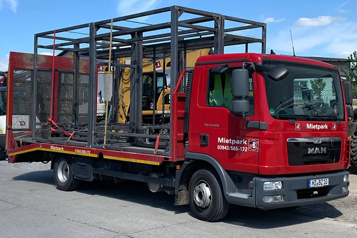 Mit unserem eigenen Fuhrpark erbringen wir für Sie Maschinen- und Gerätetransporte, Schwerlasttransporte von bis zu 29 t Zuladung und einer Überbreite von bis zu 3 m. Sieben verschiedene Fahrzeugkombinationen, auch mit Ladekran, stehen zur Verfügung.